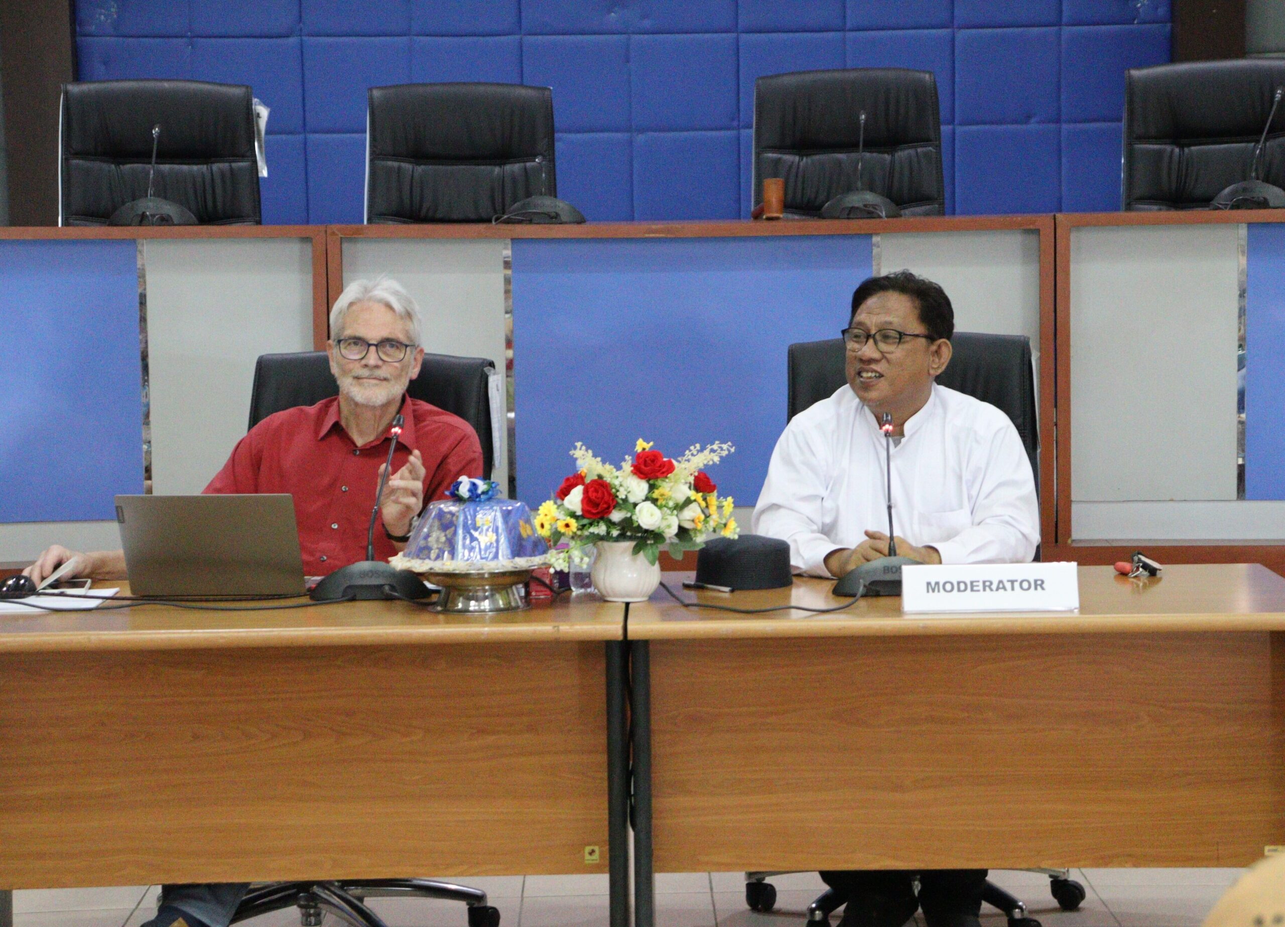 Prof. Dr. Sapto Haryoko, M.Pd. memberikan materi pada kuliah umum