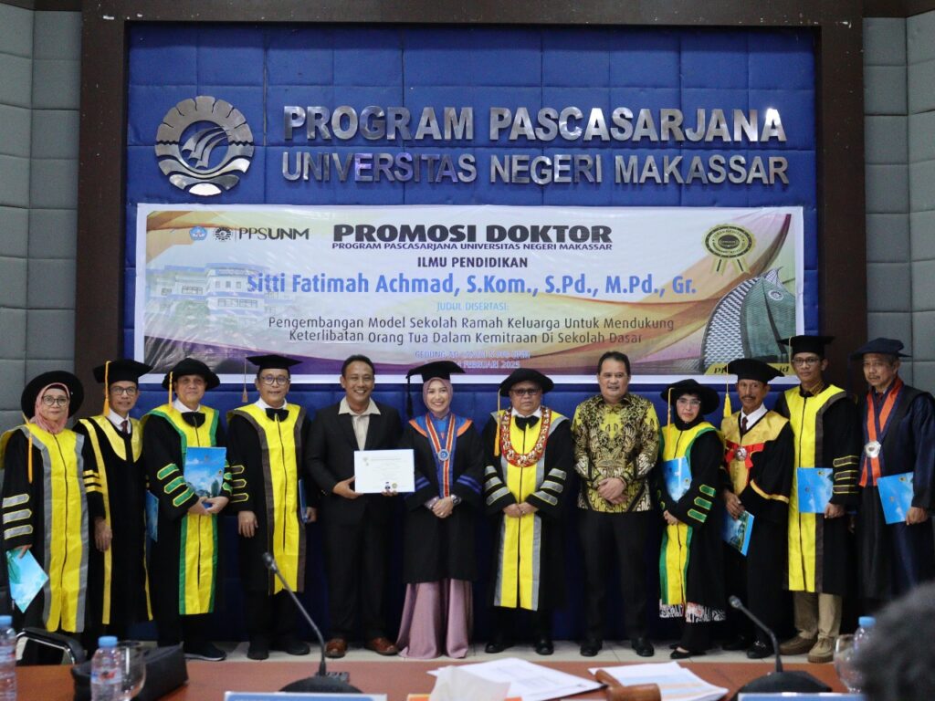 Staf Ahli Pemkab Maros sekaligus pendidik, Dr. Sitti Fatimah Achmad, S.Kom., S.Pd., M.Pd., Gr., lulus ujian promosi doktor Prodi Ilmu Pendidikan PPs UNM dengan predikat Pujian atau Cumlaude pada Jumat, 14 Februari 2025 di aula PPs UNM. Fatimah Achmad mempertahankan disertasinya yang berjudul: “Pengembangan Model Sekolah Ramah Keluarga untuk Mendukung Keterlibatan Orang Tua dalam Kemitraan di SD.”Sidang promosi dipimpin oleh Rektor UNM, Prof. Dr. Karta Jayadi, M.Sn dengan penguji Prof. Dr. Wahira, M.Pd (Wadir 1), Prof. Dr. Arismunandar, M.Pd (Kaprodi), Prof. Dr. Hamsu Gani, M.Pd. (Promotor), Dr. Suardi, M.Pd. (Kopromotor), Dr. Andi Jamilah, M.Sn, Prof. Dr. Kamaruddin Hasan, M.Pd., Prof. Dr. Abdul Saman, M.Si. Kons., dan Prof. M. Yunus, M.Pd. (penguji eksternal). Dr. Sitti Fatimah Achmad, S.Kom., S.Pd., M.Pd., Gr. merupakan Doktor ke-297 pada Prodi Ilmu Pendidikan PPs UNM.